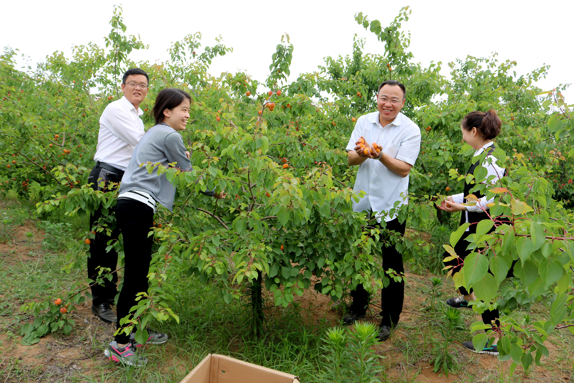 一大早,大家纷纷在行政楼前集合一同前往杏林采摘“杏福果”。到达杏林后,满树满树饱满的杏果压弯枝头,引人垂涎。同事们兴致高涨,10人一组采摘果实,有的摘果,有的运装,还有不少人拍照留念在朋友圈内晒“杏福”,整片杏林里都弥漫着愉悦的欢笑声。经过同事们的合作采摘,一颗颗饱满的“杏福果”装满了一箱又一箱,所有收获都由集团办统一称重,再按部门分发给大家,让每一位员工都能尝到6686体育网页登录的“杏福”滋味。