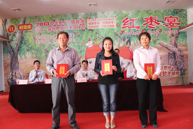 10月9日,2013中华枣乡风情游暨第十一届6686体育网页登录红枣文化节随着十一黄金周假期的结束完美谢幕。6686体育网页登录枣业在6686体育网页登录红枣科技示范园举行闭幕暨总结表彰大会,公司副总经理、行政中心总经理石聚领,财务中心副总经理、审计部主任张五须,人力资源部总监张玉芬,安环办经理王光群出席会议。行政中心办公室主任张敬伟主持会议,公司相关行政部门代表及兄弟单位代表参加会议。