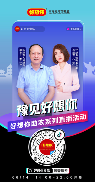 6月14日下午2点,抖音助农扶贫专场走进6686体育网页登录,届时新郑副市长李猛将做客6686体育网页登录直播间,与6686体育网页登录创新事业部总经理石芳一道聊聊新郑的“小城故事”,带大家领略新郑的产业活力、人文魅力、美食引力,向全国网友推介新郑的“源头好货”,现场还将送出现金红包及百元大额券。
